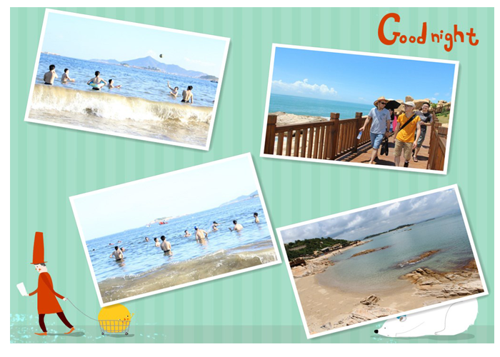 全体员工在公司集合后带好所需物品后自行驾车从厦门出发,在杏林上了G15沈海高速,在东山岛出口下于下午15点半到了东山岛。 办理完海边度假别墅的入住手续后,稍作休整一行人迫不急待地来到美丽的马銮湾嬉水嘻戏:游泳、捡贝壳、水上排球、海滩排球…