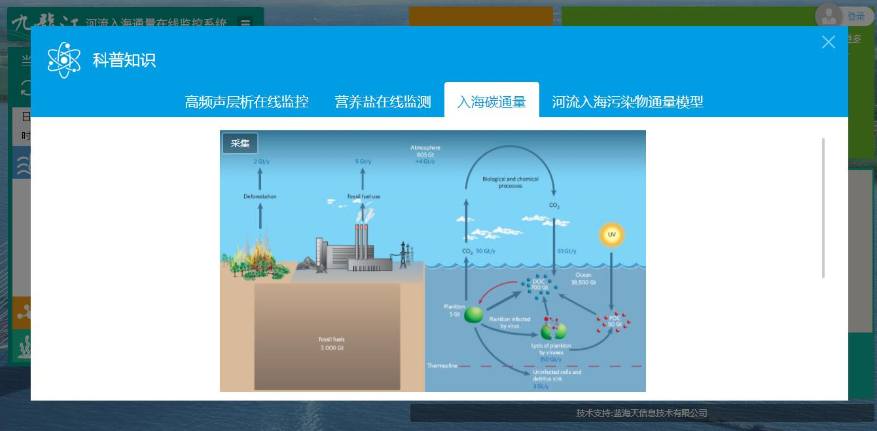 项目针对水文(水温、水位、流速、流量)、营养盐(硝氮、亚硝氮、铵氮和磷酸盐)和水质生态(pH、溶解氧、浊度、叶绿素、浮游植物类群等),研发相关在线监测技术并研制样机,通过硬件、软件、网络集成与现场应用,实时获取河海断面流量(10秒频率)、营养盐(小时频率)、水质和生态(分钟频率)数据,结合河流LOADEST通量模型,采用WEB-GIS可视化技术,实现河流入海营养盐、颗粒物和有机碳通量的智能在线监控。